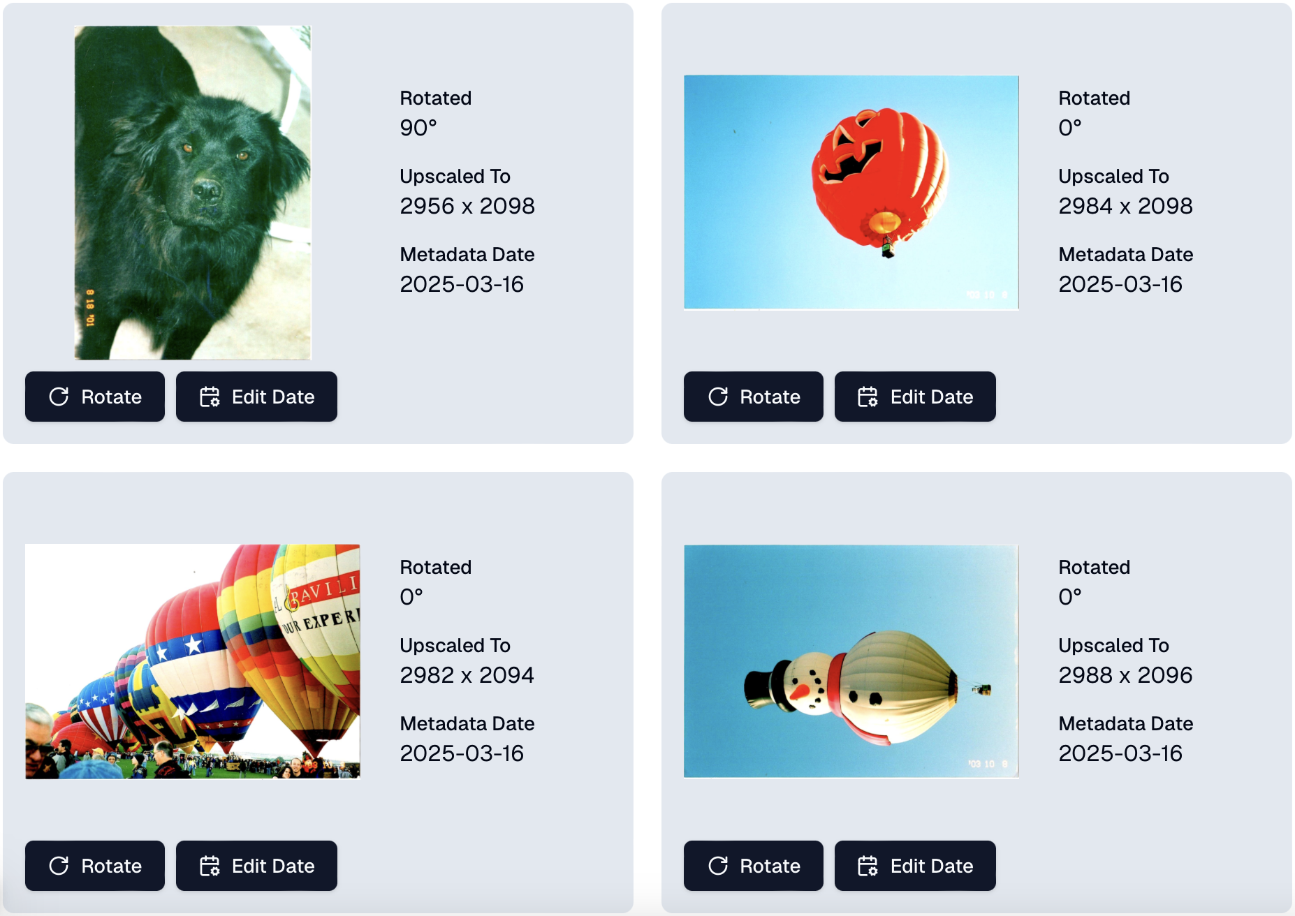 Review metadata and download your processed photos.