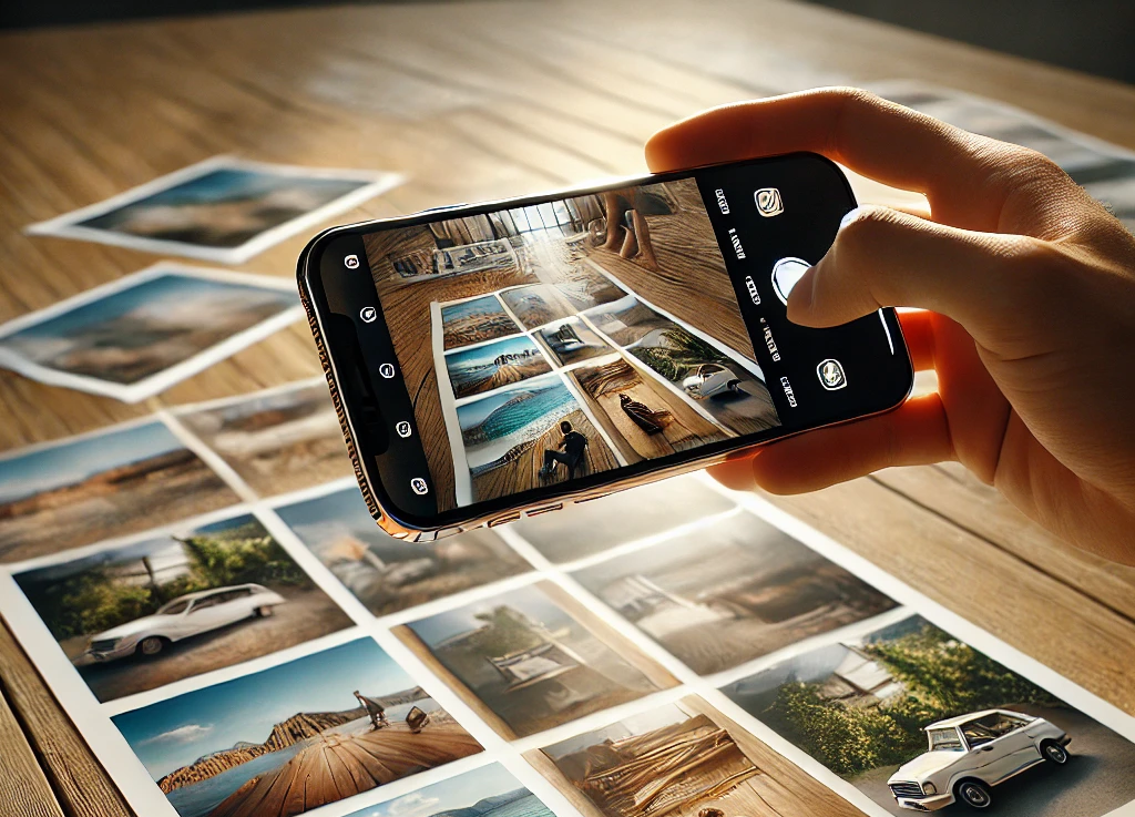 Place photos on a plain, light-colored surface